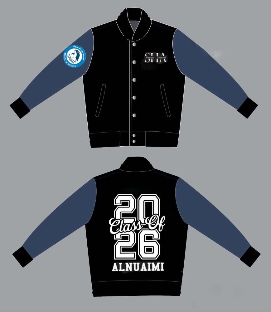 جاكيت تخرج 2026 سينيور مطرز باسمك، تصميم خاص وخامة فخمة تناسب التخرج. اطلب جاكيتك المميز الآن مع تطريز حسب الطلب.